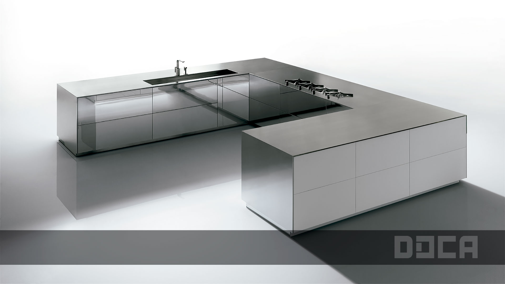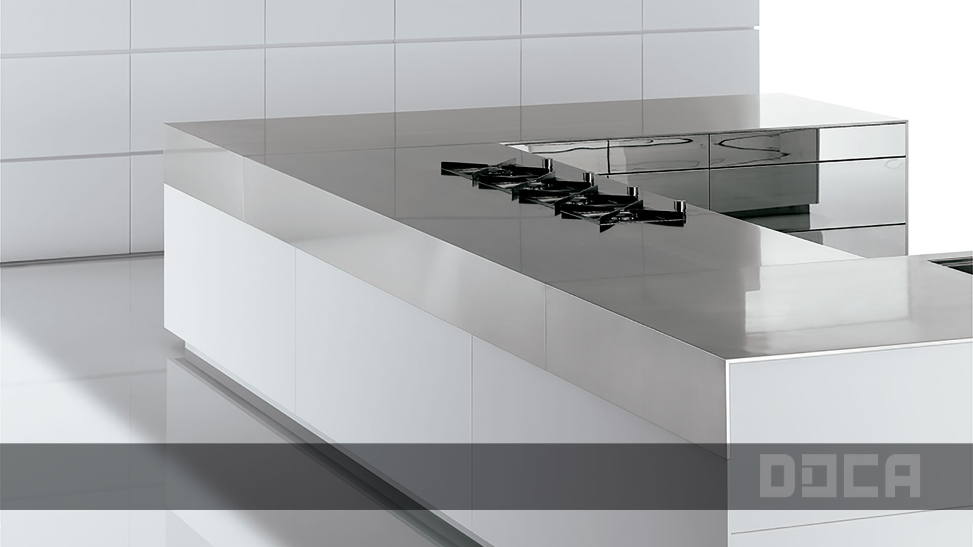 The Super Mirror kitchen elevates minimalism through the use of mirrored cabinetry. It is the perfect balance between elegance and modernity that takes minimalism to the most extreme sense of the word.